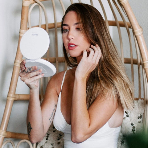 The Lumi travel mirror is the essential beauty accessory for busy women on the go who always want to look and feel their best. At 5 inches wide, it contains two large premium-quality glass mirrors, offering more clarity and detail than a regular compact. The LED lights provide a color-corrected reflection of your skin and Lumi is lightweight enough to place in your handbag, luggage, or gym bag so you can take her with you everywhere.