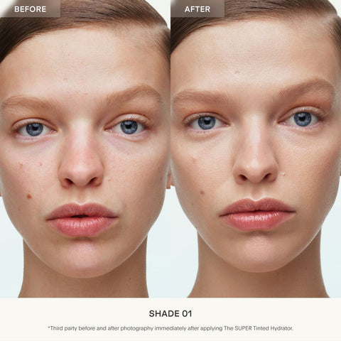 One-part next-gen moisturizer, one-part intuitive skin tint for boosted luminosity, minus the weight of makeup: Each flexible, self-adjusting shade blends like a second skin, delivering hydration and skin-fortifying ingredients for visibly smoothed texture with a 3D moisture shield and dewy, sheer finish.